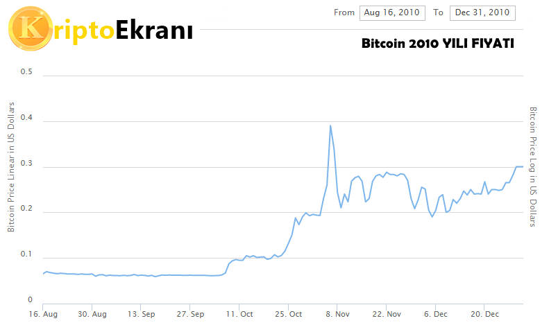 Ekim ayını 0.2 Dolar seviyesinde kapatan Bitcoin, Kasım 2010’da bir ara 0.5 Dolar’a 📈 kadar yükseldi ama bu seviyelerde kalıcı olmayı başaramayan Bitcoin, ay sonunda tekrar 0.2 Dolar seviyelerine geriledi. Aralık ayında ise Bitcoin’in değeri 0.3 Dolar 📉 oldu. Ay boyunca 0.2 Dolar ile 0.3 Dolar seviyelerinde giden Bitcoin, böylece yılı 0.3 Dolar ile kapadı.